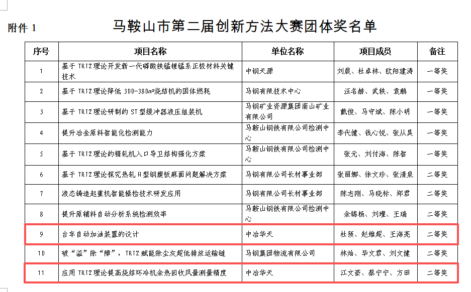 參加此次大賽,通過(guò)“以賽促研”“以賽促培”,進(jìn)一步提升了創(chuàng )新方法在中冶華天的推廣應用,為創(chuàng )新人才培養提供更大空間和更多機會(huì ),助力公司再轉型再升級、邁向高質(zhì)量發(fā)展。